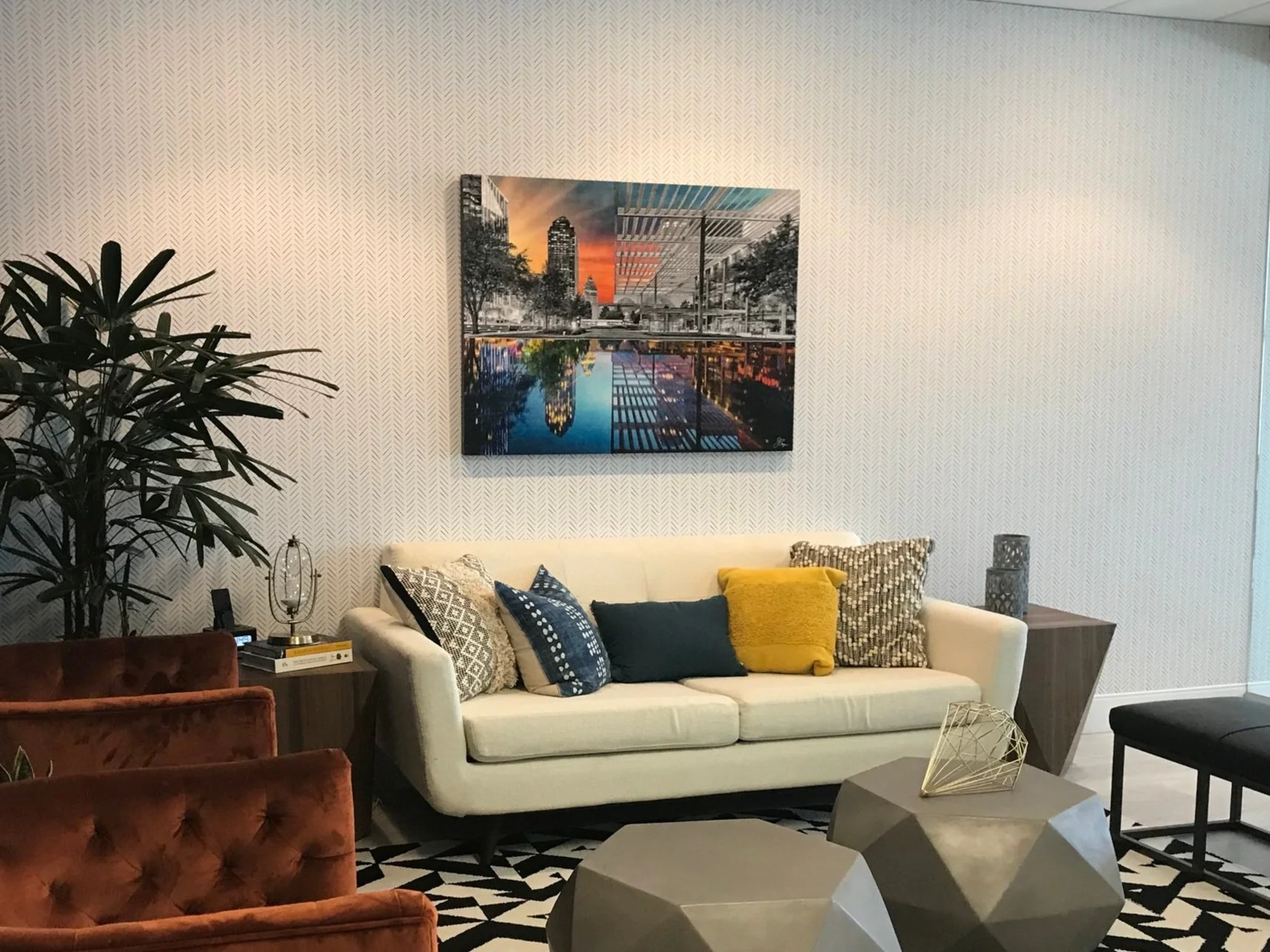 It all begins with an idea. I was inspired by the work of an Austin Artist and we partnered to create a custom piece for a Commercial Developer in Dallas, Texas that celebrated the city that holds their headquarters and express their dynamic vision.